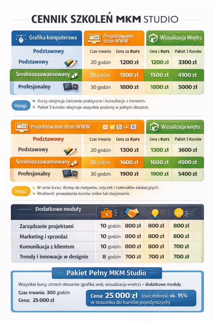 Kursy nie są obietnicą natychmiastowej zmiany zawodu, ale dają solidne fundamenty, praktyczne kompetencje i pewność w poruszaniu się w świecie technologii i designu.